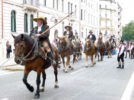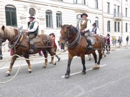 Stark vertreten war der Samerberg beim heurigen Oktoberfestzug. In einem eigenen Block präsentierte sich der Trachtenverein Hochries-Samerberg von Grainbach unter der Leitung von Ersten Vorstand Peter Sattlberger mit seinen Männern und Trachtenfrauen. Mit dabei war auch die Historische Samergruppe mit ihren Sam-Rössern. Deren Leiter Michael Sattlberger hatte vor zwei Jahren eine Inn-Plätte nachgebaut. Diese war unter anderem mit Getreide und Salzsteinen beladen und wurde von Pferden gezogen. Für die musikalische Begleitung sorgte die Musikkapelle Samerberg unter der Leitung von Benedikt Paul. Nach sieben Kilometern gab es dann für die Samerberger die verdiente frische Maß und Brotzeit. “Das war ein ganz besonderes Gemeinschaftserlebnis und den Samerberg haben wir vielen Zuschauern, die appllaudiert haben, auf schöne Weise vorstellen können”, so die einhellige Meinung der Trachtler, Samer und Musikanten vom Samerberg.
