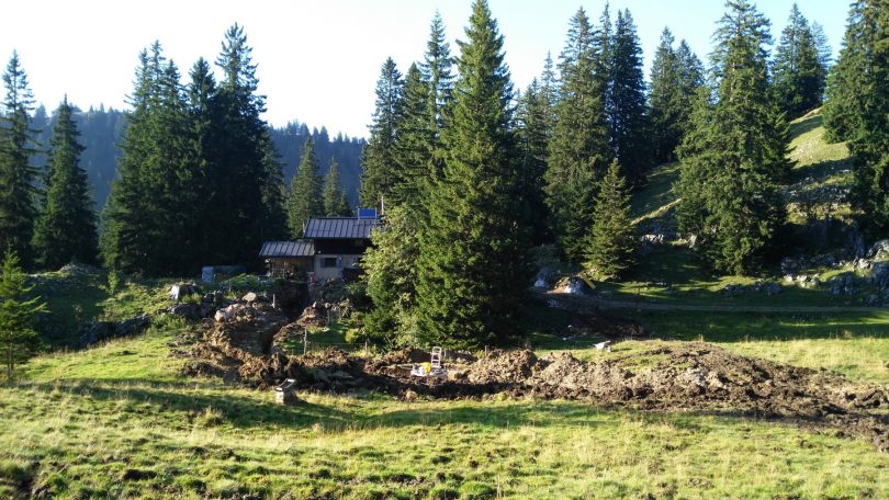 In den letzten Jahren konnte die zuverlässige Wasserversorgung der Diensthütte der Bergwacht Rosenheim – Samerberg nicht mehr gewährleistet werden. Durch die alte Wasserleitung lief das Wasser nicht immer selbstständig von der 200 Meter entfernten Quelle zur Hütte. Dadurch musste in den letzten Jahren Trinkwasser in Eimern auf die Hütte transportiert werden und im Winter Schnee geschmolzen werden.