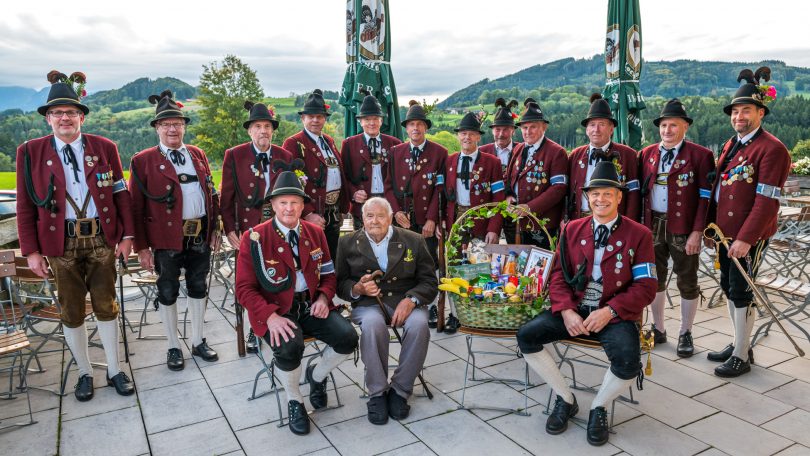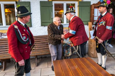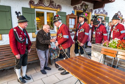 Die Freude war groß, als die Samerberger Gebirgsschützenkompanie ihrem Gründungsmitglied am 90. Geburtstag einen Ehrensalut abfeuerte.