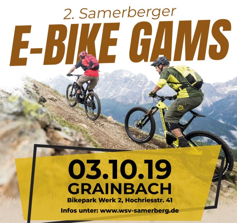Der WSV Samerberg veranstaltet am 3.10.2019 zum zweiten Mal eine E-Bike Tour! Die Rundfahrt dauert ca. 1,5 – 2,5 Stunden und startet am RockyMountain-Bikepark Werk 2, Hochriesstr. 41 in Grainbach am Samerberg. Dabei geht´s über das Mühltal, Nußdorf, Windshausen, Kasalm, Feichteckalm, Pölcherschneid (Trail bergab), Waldparkplatz, Spatenauparkplatz, Weyereralm zurück zum Bikepark oder vorher verkürzt und dabei nicht über das Feichteck.
