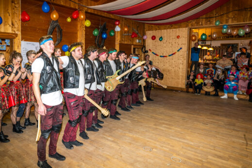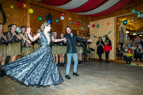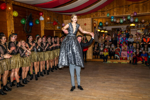 Eines der besonderen Höhepunkte war sicherlich der Auftritt der Rohrdorfer Faschingsgarde mit Prinzenpaar, Ministern und Gefolge. Ihre Majestäten Prinzessin Maxima I. „Beautiful Voice of the Highest Mountain“ und Prinz Florian II. „Rocking God of Hell Fire“ zeigten, dass sie auf der Tanzfläche eine gute Figur machen.