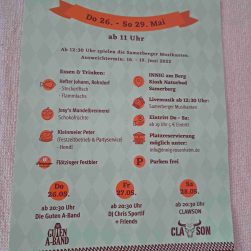Vier Tage lang herrscht klein-herbstfestliche Stimmung beim Naturbad am Samerberg. Organisiert vom Cafe Innig in Rosenheim, das auch Betreiber des Naturbad-Kiosks ist, sind an allen Tagen und Abenden bis Sonntag, 29. Mai kulinarische und musikalische Schmankerl zur gemütlichen Einkehr und Stärkung geboten. Vom Auftakttag am Vatertag mit Samerberger Musikanten diese ersten Bildereindrücke und das gesamte Programm. Im übrigen ist an diesen Festtagen das Parken am Naturbad frei.