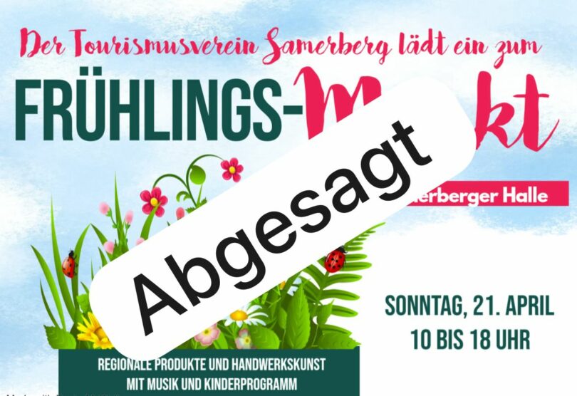 Schweren Herzens hat das Vorbereitungsteam um Roswitha Estermann den für kommenden Sonntag, 21. April auf dem Samerberg geplanten Frühlingsmarkt abgesagt.