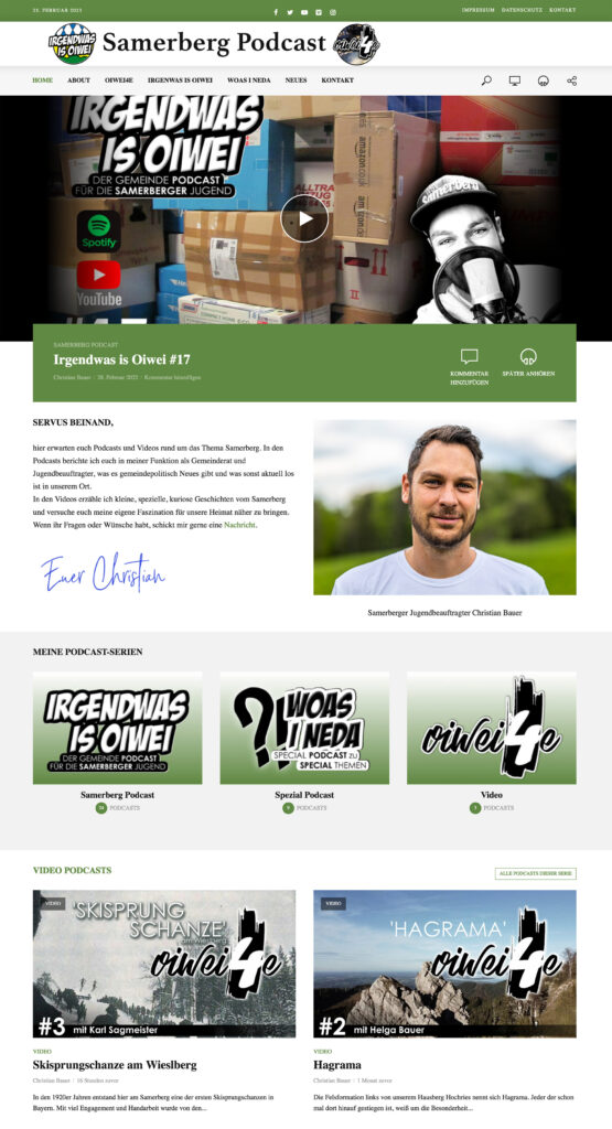 Herausgegeben wird der Podcast vom Mitglied im Gemeinderat Samerberg und Jugendbeauftragten Christian Bauer. Er ist Sozialpädagoge und arbeitet seit 2008 beim Diakonischen Werk Rosenheim in der offenen Jugendarbeit, in der Jugendsozialarbeit an Schulen, sowie der Suchtberatung und Prävention. Er hat also schon rein beruflich sehr viel mit Jugendlichen zu tun. Natürlich ist er auch mit dem Samerberg verbunden. Er ist in Grainbach aufgewachsen, geprägt durch ‚Radlfangsti‘ im Dorf, Lagerbauen in der Filze und ‚Eckfangsti‘ im Schwimmbad.