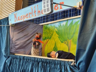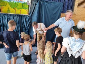 Es war eine willkommene und auch gut umgesetzte Idee von Samerbergs Bürgermeister Georg Huber, den jungen Familien im Rahmen des Frühlingsmarktes zwei Auftritte des Chiemsee-Kasperltheaters zu schenken. Gleich zweimal war die Mehrzweckhalle voll als der Bürgermeister quasi in eigener Sache mitspielte. Huber übernahm die Rolle des entführten Bürgermeisters beim gleichnamigen Stück, das der Chiemseer Oberkasperl Stephan Mikat selbst geschrieben hatte. Natürlich ging alles gut aus und so trug abschließend das Verteilen von Gummibärchen-Tüten zur Rundum-Freude von Klein und Groß bei.