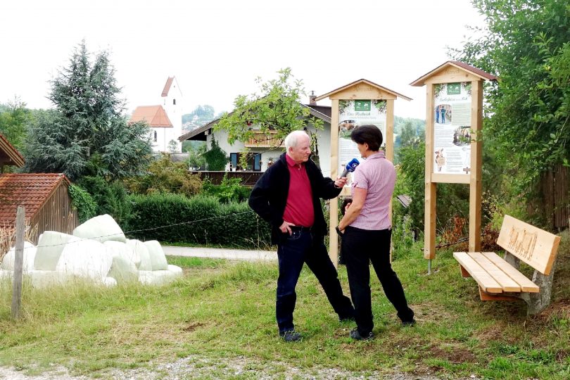 Überaus viel Anerkennung und Zuspruch erfahren kurz nach der Fertigstellung die Landwirtschaftswege „Almen“ und „Tal“ auf dem Samerberg. Bereits im Vorjahr entstand die Idee, im Frühjahr wurde das ehrenamtliche und von vielen Stellen unterstützte Projekt im Rahmen eines Hoffestes in Grainbach vorgestellt und inzwischen sind auch die insgesamt 28 Schau- und Informationstafeln aufgestellt, so dass sich Interessierte auf den Weg machen können. Auch der Bayerische Rundfunkt interessierte sich für dieses neue Wander-Angebot auf dem Samerberg. Redakteur Martin Binder begab sich zusammen mit Initiatorin und Tourismusvereins-Vorsitzenden Roswitha Estermann von Station zu Station und hat einen umfangreichen Beitrag zusammengestellt. Dieser wird am kommenden Freitag, 26. Juli im BR-Heimat-Radio in der Reihe „Heimatspiegel“ in der Zeit zwischen 7 Uhr und 9 Uhr gesendet und am Samstag, 27. Juli wird die Ausstrahlung auf BR Heimat zwischen 9 Uhr und 11 Uhr in der Sendung „Wald und Gebirge“ wiederholt.