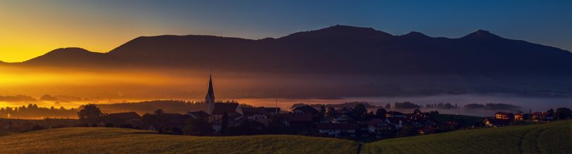 Morgenstund` auf dem Samerberg: zögernd, zart, so still und leise, schamhaft fast und auf bescheidene Weise bahnt die Sonne sich den Weg – und versetzt die von den Samerberger Gebirgsschützen frisch renovierte Mesnerkapelle zwischen Grainbach und Törwang in ein besonders faszinierendes Licht.