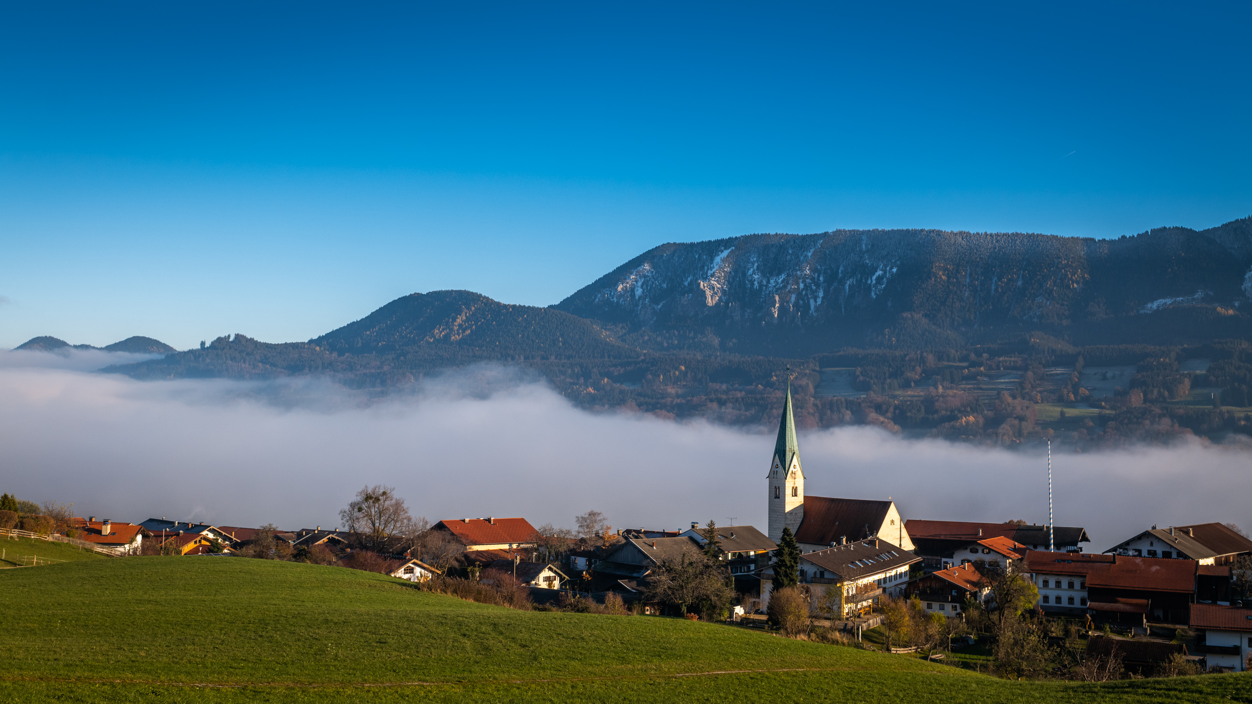 Der Alpenföhn wird zum Nachmittag schwächer und der Nebel zieht aus dem Tal nach oben zum Samerberg…