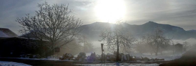 In der Früh und am vormittag waren dieser Februartage auf dem Samerberg besondere Stimmungen zu sehen – Grund hierfür waren winterliche Nebelfelder, die die eh schon vielfältige und abwechslungsreiche Landschaft des Hochplateaus noch interessanter machte.