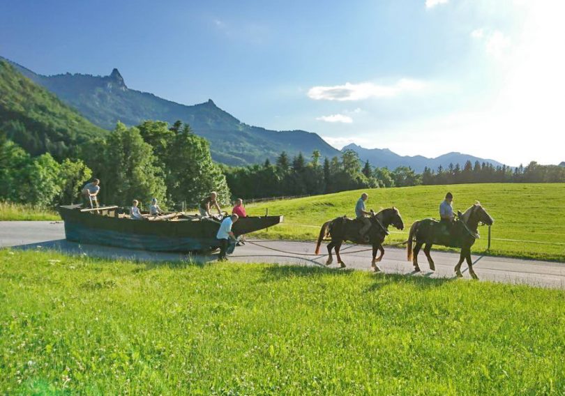 Nach über 400 Stunden handwerklicher Arbeit hat Michael Sattlberger von Schweinsteig auf dem Samerberg eine neue Plätte für die Inn-Schifffahrt fertiggestellt. Um die Wasser-Tauglichkeit des Schiffes zu testen, ging es erstmals mit zwei Pferden voran zum Inn. Zukünftig kann das Schiff bei Sonder-Veranstaltungen eingesetzt und angemietet werden. Der erste öffentliche Einsatz der Plätte mit Pferdegespann ist am kommenden Sonntag, 9. Juli beim Inngau-Trachtenfest in Neubeuern. Dann wird Michael Sattlberger als Mitglied der Samer-Gruppe und mit dieser sowie mit dem Trachtenverein Hochries-Samerberg am Festzug ab 14 Uhr teilnehmen.