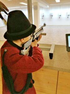 Matthias Hochhäuser (bald 10 Jahre) beim Lichtpistolen-Schießen