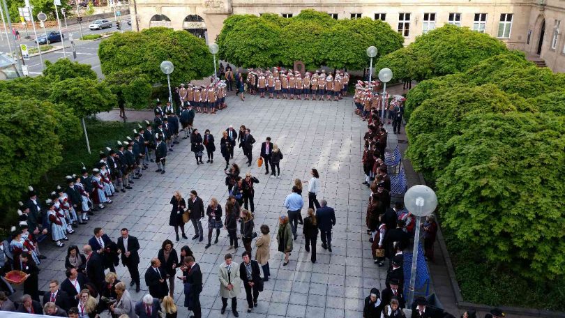 Einen interessanten und werbewirksamen Auftritt hatten die aktiven Dirndl und Buam des Trachtenvereins Hochries-Samerberg beim 43. Germany Travel Mart der Deutschen Zentrale für Tourismus in Nürnberg. Gemeinsam mit Trachtlern und Musikanten vom GTEV „D´Rauschberger“ Zell aus Ruhpolding präsentierten sich die Grainbacher Trachtler Tourismusfachleuten und Journalisten aus der ganzen Welt. Auf Vermittlung und Einladung des Tourismusverbandes Oberbayern München (TOM) zeigten die Brauchtumgsgruppen farbige und gelebte Traditionspflege in Oberbayern. TOM-Geschäftsführer Oswald Pehel freute sich über die Auftritte und Teilnahme am Festzug und er bedankte sich bei Vorplattler Johannes Stuffer vom GTEV Grainbach mit den Worten: „Platteln, Tanzen und Tracht, wie sie in Oberbayern daheim sind und gerne Gästen gezeigt werden, haben auch in der Franken-Metropole viel Freude bereitet“. Während des mehrtägigen Kongresses konnte Dagmar Mayer von der Gruppenabteilung des Tourismusverbandes Chiemsee-Alpenland viele und gute Verkaufsgespräche führen.