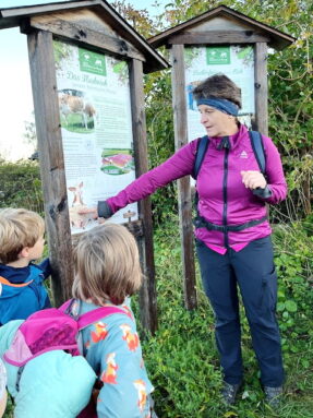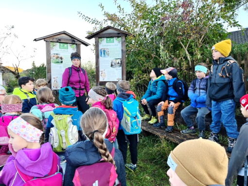 Einen anschaulichen Unterricht in freier Natur gab es für die Schülerinnen und Schüler der zweiten Grundschulklasse auf dem Samerberg. Ziel der Erkundungswanderung war nach vorheriger Abstimmung durch Klassenlehrerin Sabine Braun mit derTourismusvereins-Vorsitzenden Roswitha Estermann ein Teil des Landwirtschaftsweges mit seinen Informationstafeln auf der Talebene.