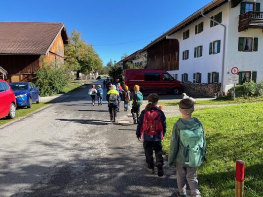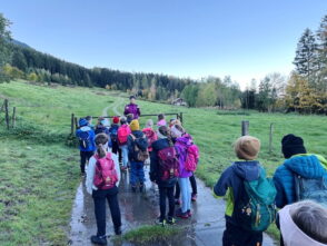 Die Wanderung führte von Grainbach über Hartbichl, zur Glasnalm und wieder zurück. „Wir haben dabei sogar Steinpilze gefunden und meinen Opa und meine Oma bei ihren almerischen Arbeiten getroffen“ – so zwei Schülerinnen, die sich wie ihre Klassenkameraden an den Schautafeln zur Landwirtschaft und zur Erzeugung von Lebensmitteln genau informieren ließen und großes Interesse zeigten. Zum Schluss durften die Kinder noch den Estermann-Kuhstall besichtigen, das Melken probieren und letztlich eine BGL-Trinkmilch genießen. Gastgeber, Lehrerin und Schüler waren sich einig, dass dieser Unterricht schön und sinnstiftend gleichermaßen war.