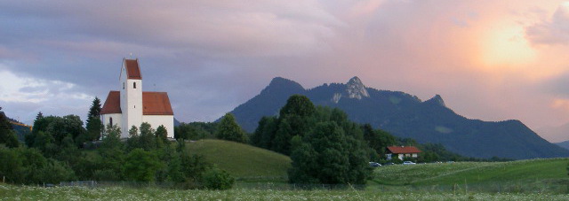Foto: Hötzelsperger – Kirche in Grainbach mit Abendstimmung