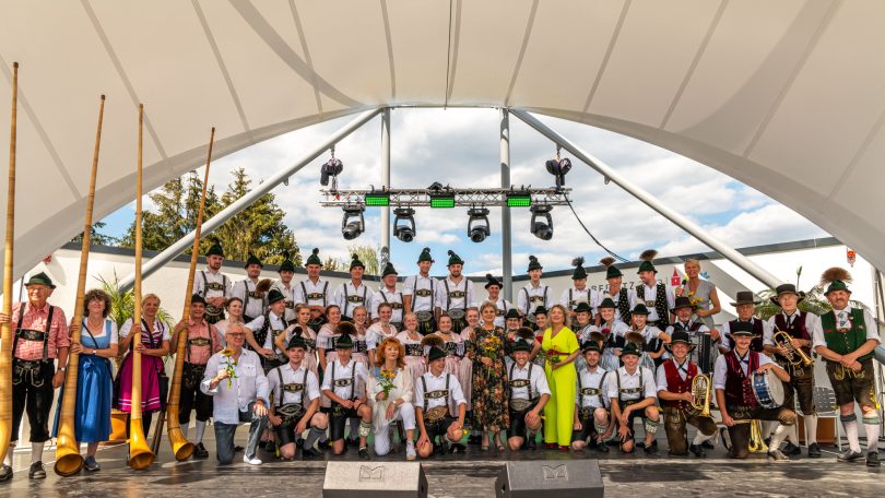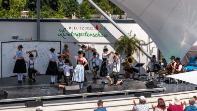 Großer Tag für die Hochtalregion Samerberg im Land Brandenburg: auf der großen Bühne im Sommergarten der Landesgartenschau des Landes Brandenburg in der Stadt Beelitz präsentierten die beiden Trachtenvereine „Almenrausch“ Rossholzen und Hochries-Samerberg (Grainbach) bei einem „Bayerntag“ stellvertretend für die Tourismusverbände Oberbayern-München und Chiemsee-Alpenland sowie natürlich für die Gemeinde Samerberg das Urlaubsland Bayern.