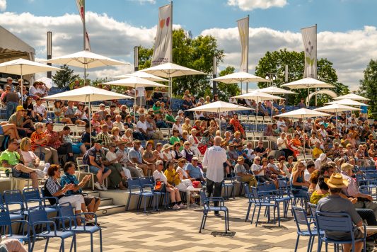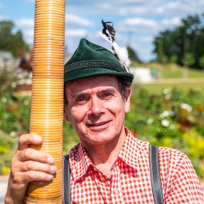 Begleitet wurden die zwei Dutzend Tänzerinnen und Plattler von der Samerberger Tanzlmusi unter der Leitung von Benedikt Paul. Über zwei Stunden während bester Besucherzeit vor einem sehr interessierten Publikum wechselten sich die Samerberger mit der Alphornbläsergruppe Bayern aus den Reihen des Vereins der Bayern in Berlin unter der Leitung von Helmut Amberger ab. Moderatorin Ulrike Finck lockerte die länderübergreifende Freundschaft, die ja schon seit dem Mauerfall zwischen der Chiemsee-und Spreewald-Region besteht, mit Plattler- und Tanzproben auf. Dabei konnten die Brandenburger Männer erfahren, dass es gar nicht so einfach ist, einen einfachen Plattler, wie den Häuslratz zu lernen. Der Bayerntag war auch ein Werbetag, denn die Tourismusinformationen wurden stark nachgefragt und mitgenommen. Namens der gesamten Auftritts-Gruppen sowie der Gemeinde und Gäste-Information Samerberg konnte sich Anton Hötzelsperger  bei Andrea Peetz  von der Laga-Leitung und bei der Stadt Beelitz für die Einladung sowie für die gerade nach Corona wieder guttuenden Auftritts- und Werbemöglichkeiten mit Präsenten vom Samerberg und aus dem Chiemsee-Alpenland.  Tagszuvor konnten die Samerberger Musikanten bei einem Bayern-Abend im Restaurant Maximilians in der Friedrichstraße für zusätzliche gute Stimmung sorgen.