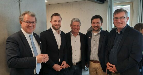 „Wohnen Inklusiv“ – „Winkl“ heißt das Motto einer besonderen Wohngemeinschaft in der Rosenheimer Schillerstraße. Dort leben Studierende der TH Rosenheim und junge Menschen mit Beeinträchtigung unter einem Dach zusammen. Betreiber des Konzepts ist das Katholische Jugendsozialwerk München e.V. (KJSW), Bauherr und Eigentümer des Hauses ist die Paula Schamberger Stiftung mit Sitz in der Gemeinde Samerberg. Mit der kirchlichen Segnung durch Domkapitular Msgr. Klaus Peter Franzl und Diakon Günter Schmitzberger wurde das neue Haus nun auch offiziell eingeweiht. Berthold Wübbeling, Vorstand des KJSW, dankte allen Beteiligten für das gelungene Werk, auch MdL Klaus Stöttner, Thomas Plischke („Gemeinsam leben lernen“) und Rosenheims Zweiter Bürgermeister Daniel Artmann lobten die hervorragende Idee der Inklusion. Samerbergs Bürgermeister Georg Huber blickte als Vorsitzender der Paula Schamberger Stiftung und somit als Bauherr auf die erfolgreiche Planungs- und Bauphase zurück: 2019 hatte sich eine Studentengruppe der TH Rosenheim mit dem Thema „Haus für Studierende“ beschäftigt und gute Lösungsvorschläge gemacht. 2020 luden TH-Präsident Heinz Köster und MdL Klaus Stöttner die Samerberger Stiftungsräte und Thomas Bacher vom KJSW zu weiteren Gesprächen ein. Das gemeinsame Projekt nahm Formen an. Mit dem Planungsbüro Würfel (WSB Architekten) aus Bruckmühl fand die Stiftung einen geeigneten Partner, der die Idee umsetzte. Im Herbst 2021 erfolgte der Erste Spatenstich und nicht einmal ein Jahr später, im Sommer 2022 war das 1,6 Mio Projekt fertig und die ersten der neun Bewohner zogen ein. „Ich bin stolz, dass wir mit diesem Neubau dieses herausragende inklusive Konzept an dieser schönen Lage verwirklichen konnten. Am Ende dürfen wir uns freuen über ein schönes, ökologisch vorzeigbares, energetisch zeitgemäßes Haus in nachhaltiger Holzbauweise“, sagte Bürgermeister Georg Huber, der nochmals allen am Bau und am Konzept Beteiligten danke. Dass dieses Konzept funktioniert, bewiesen die eifrigen Bewohner, die durch das Haus führten und die Begeisterung auf die Besucher förmlich übertrugen.