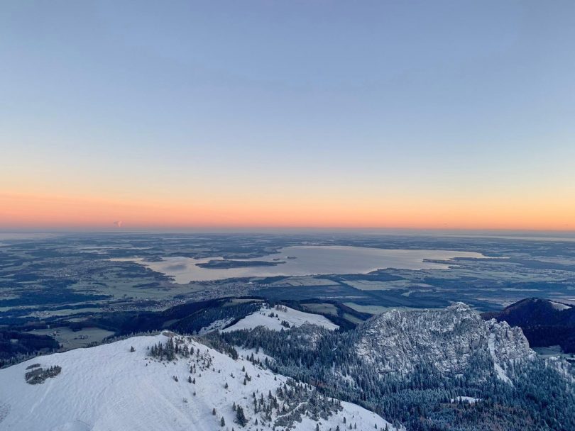 Das frühe Aufstehen hat sich für Lisa Hötzelsperger und Martin Jungbauer gelohnt als sie sich zum Wochenend-Beginn auf den Weg zur Kampenwand machten. Exakt um 7.28 Uhr tauchte die Sonne auf, als die Frühaufsteher nahe dem Gipfelkreuz standen. Eindrucksvolle Momente und faszinierende Aussichten in die weite Bergwelt und hinab zum Chiemsee waren der Lohn für die morgendliche Berganstrengung.