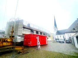 Fotos: Hötzelsperger – Eindrücke vom Beginn der Bauarbeiten am inzwischen eingerüsteten Priener Pfarrhof.