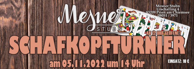 Am Samstag, 5. November laden die Wirtsleute von den Mesnerstuben in Prien-Urschalling zu einem Schafkopfturnier ein. Beginn ist um 14 Uhr. Weitere Informationen können diesen Bildern entnommen werden.