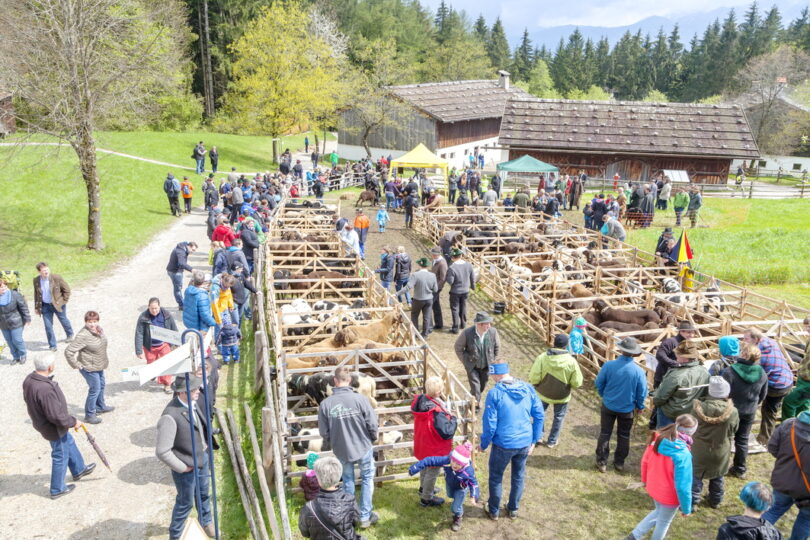 Rund 120 Braune, Schwarze und Gescheckte Bergschafe erwartet die Arbeitsgemeinschaft Farbiges Bergschaf am Sonntag, 28. April, im Freilichtmuseum Glentleiten des Bezirks Oberbayern zur Prämierung. An kaum einem anderen Ort können Interessierte so viele der seltenen Tiere auf einmal erleben. Neben dem Zuchtwettbewerb am Vormittag können sich Besucherinnen und Besucher des Museums den ganzen Tag über auf ein buntes Rahmenprogramm mit Schafschur, Wolle Spinnen, Filzen und vielem mehr freuen. Um 13:30 Uhr steht der Höhepunkt der Veranstaltung an: Die Verkündung des diesjährigen Bayernchampions – des schönsten Schafs von allen!