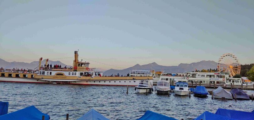 Fast gleichzeitig sind am Donnerstagabend die beiden Flaggschiffe der Firma Feßler “Edeltraud” und “Ludwig Feßler” zum Feierabend in den Priener Hafen eingefahren. Davon dieser Bilderbogen, der von den Priener Schären sowie von der Bootshalle der Chiemsee-Schifffahart gemacht worden sind.