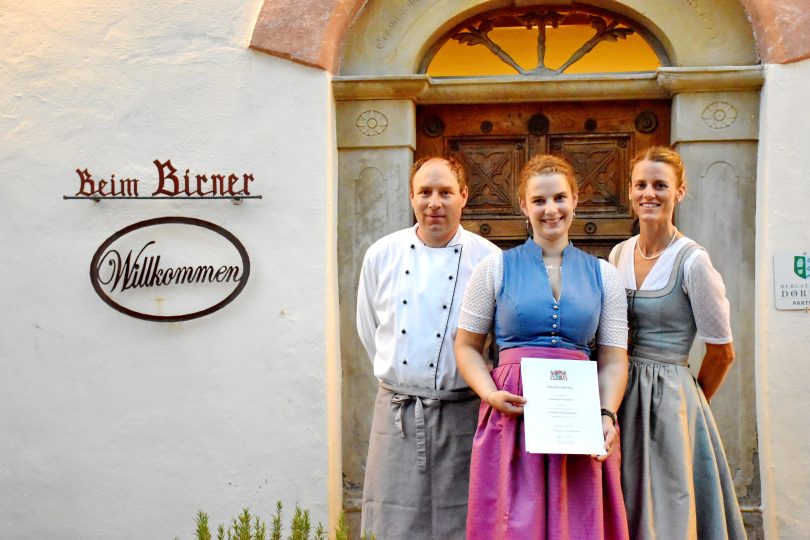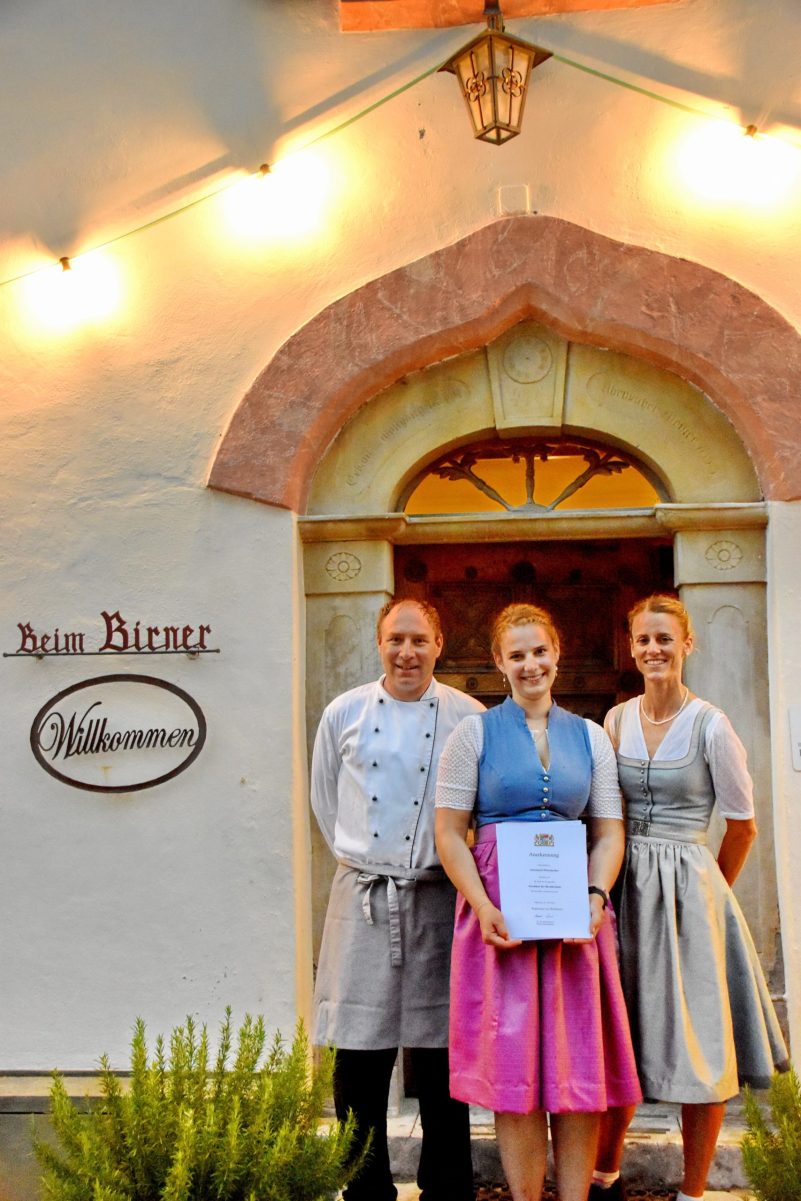 Nach der Realschule hat Annemarie Pletschacher zunächst eine zweijährige Ausbildung in „Hauswirtschaft“ an der Traunsteiner Berufsschule absolviert. Heute heißt der Beruf „Assistentin für Ernährung und Versorgung“ erzählt sie. Aber diese Ausbildung hat ihr nicht gereicht. Als Schülerin hatte sie in den Weihnachtsferien im Gasthof Zellerwand genannt „beim Birner“ gejobbt, was ihr offensichtlich viel Freude gemacht hat; denn nach ihrer ersten Ausbildung hat sie sich entschlossen, eine weitere Lehre als Restaurantfachfrau einzugehen. Nach den ersten zwei Jahren der Ausbildung fasste Annemarie einen weiteren Beschluss, nämlich die Lehre zur Köchin anzuschließen. Die hat sie jetzt nach weiteren zwei Jahren mit diesem hervorragenden Abschluss beendet. Die Auszeichnung bekam sie für einen Notenschnitt von 1,5.