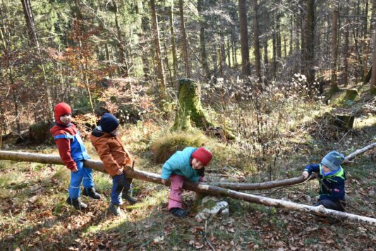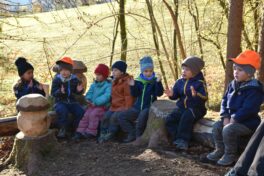 Aber es gibt auch die „Goldenen Waldregeln“, die müssen von allen Kindern eingehalten werden. Es sind klare Regeln mit sinnvollen Konsequenzen, zum Beispiel dürfen die Kinder nicht aus Sicht- und Hörweite gehen, nicht mit spitzen Stöcken aufeinander zulaufen, schnitzen mit dem Messer nur mit einem Erwachsenen zusammen und die mitgebrachte Brotzeit wird grundsätzlich zusammen gegessen.