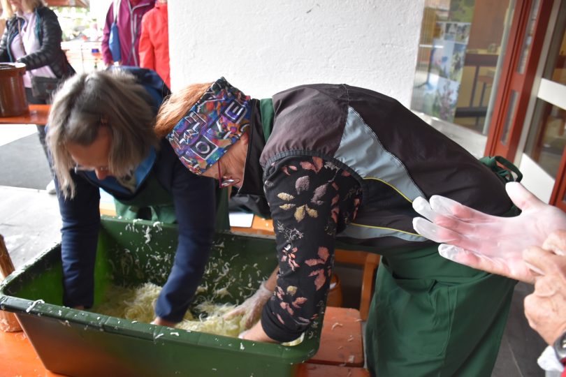 Schon vor sechs Wochen begann die Arbeit für das Sauerkrautfest. Mitglieder des Gartenbauvereins Schleching haben fleißig die Kohlköpfe gehobelt und mit traditionellen Gewürzen eingelegt, um es beim Sauerkrautfest anbieten zu können.