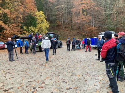 Beim Abwährtsgehn wurde dann am „Bahnhof“ noch etwas nachgearbeitet, bevor alle Helfer am frühen Nachmittag wieder zurück am Parkplatz der Geigelsteinbahn eintrafen.