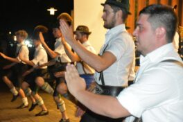 Trachtenvorstand Andi Hell begrüßte die zahlreichen Besucher auf dem Dorfplatz und freute sich, dass Schlechinger und Gäste sich wieder so zahlreich eingefunden hatten. Er resümierte über die letzten zwei Monate, wo sich eine Veranstaltung an die andere reihte. Vom Dorffest über Preisplattln, Dirndldrahn und der gemeinsame Besuch beim Gaufest in Reit im Winkl. Dabei lobte er den Erfolg der Schlechinger Dirndln und Buam beim Gruppenplattln. Bereits zum neunten Mal erreichte die Gruppe Schleching den ersten Platz beim Gaupreisplattln. Drei Wanderpokale haben die die Gamsgebirgler beim Gruppenplattln gewonnen.
