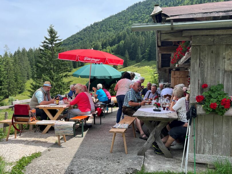 Elke und Achim Kohn, die früher sehr gern bis zur Dalsen Alm gelaufen sind, waren jetzt schon über vier Jahre nicht mehr oben, da sie den Weg mit 85 Jahren nicht mehr schaffen würden, genau wie die meisten Senioren. Elke erzählt, wie sehr sie von dem Ausflug begeistert war. „Wir wurden so nett empfangen, die Tische draußen waren gedeckt und Georg und Margot Mix haben uns sehr gut bewirtet mit kräftiger Unterstützung von Mirl und Elisabeth Anner. Wir konnten alle gemeinsam draußen sitzen und uns nach längerer Zeit mal wieder mit vielen unterhalten. Es war ein schönes Erlebnis und sehr gut organisiert“. Auch Klara Bachmann hat es sehr gut gefallen, sie war früher als Sennerin auf der Dalsenalm und hat damals noch Käse vor Ort hergestellt.