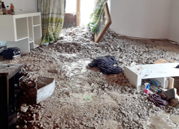 Foto: GTEV Schleching/Privat – Wohnzimmer eines hochwassergeschädigten Wohnzimmers im Berchtesgadener Land