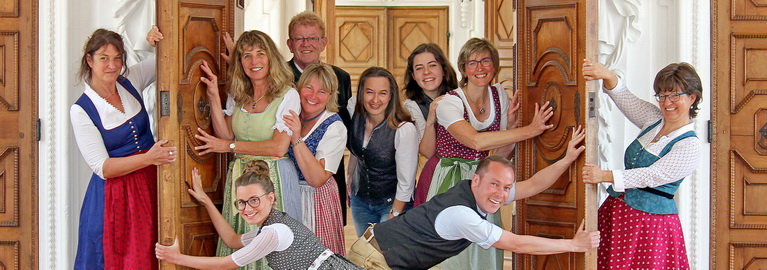 Nun ist es soweit und Schloss Hohenaschau öffnet ab Mittwoch, 01. Mai wieder seine Tore. Auch in dieser Saison gibt es verschiedene Neuerungen im Führungsangebot. Da die Zuständigkeit von Führungslinie, Burgladerl, Priental-Museum und alle organisatorischen Aufgaben in der Zuständigkeit und Bearbeitung der gemeindlichen Tourist Info Aschau i.Chiemgau liegen, gab es nun für die bevorstehende Saison noch ein Stelldichein mit dem gesamten Team. Aschaus Tourismuschef Herbert Reiter (rechts in der Türe gebeugt) und Corinna Sperger (links in der Türe gebeugt) von der Tourist Info haben zusammen mit dem Schloss-Team die letzten Absprachen und Vorbereitungen getroffen und sind voller Freude auf den Saisonstart. Mit Begeisterung hat das Team schon mal die Türen und Tore geöffnet und verschiedene Neuerungen im Führungsangebot erarbeitet. Vom 01. Mai bis 31. Oktober gelten folgende Führungszeiten: Dienstag und Donnerstag 13:30 Uhr und 15:00 Uhr. Mittwoch und Freitag 10:00 Uhr und 11.30 Uhr. Sonn- und Feiertage 13:30 Uhr und 15:00 Uhr. Burgladerl und Priental-Museum sind während dieser Zeiten geöffnet. Am Freitag, 03. Mai wird um 17:00 Uhr gleich noch mit einer sagenhaften Sonderführung die Erzähl-Saison eröffnet. Bei der „Sagenhaft“-Führung gibt es für jeden Gast eine Schmankerl-Verkostung der ganz besonderen Art. Nähere Infos und das kostenlose Faltblatt gibt es in der Tourist Info Aschau i.Chiemgau, Tel. 08052/90490 und www.aschau.de