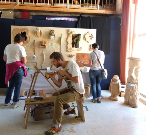 Durch das positive Erlebnis der Ausstellung im Vorjahr motiviert, freuen sich der Goldschmied Dieter Beidinger, die Textilgestalterin Marion Terhart und Stefan Fuchs aus Tirol mit gedrechselten Zirbenholzlampen auf das Wiedersehen. Wie immer erhält die KreARTiv Ausstellung durch die Vorführungen der Künstler ihre besondere Lebendigkeit. Der Steinbildhauer Bernhard Männel arbeitet vor Ort, Angelika Gimpl-Kecht dreht Glasperlen, Michal Motycka schnitzt, Johanna Nehm arbeitet am Handwebstuhl, Ulrike Plettenberg aus Fridolfing zeigt die Restaurierung von Möbeln mit dem “Wiener Geflecht”, Sandra Huber führt Bändchenweben vor und der Bürstenmacher Armin Karle zeigt sein Handwerk. Willi Beck verwandelt seine Standfläche in eine kleine Werkstatt für Bleisatz und Buchdruck und Anneliese Wöhrmann zeigt Scherenschnitt.