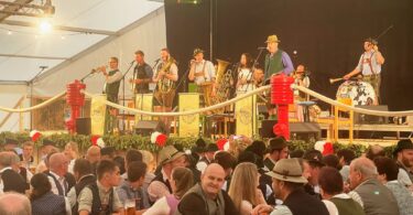 Viele Wildenwarter und Gäste erfreuten sich an den konzertanten Unterhaltungsweisen und auch daran, dass erstmals mit Johanna Rosenwink eine Dirigentin vor der großen Musikantenschar den Takt angab. Sie wechselte sich in dieser Aufgabe mit Sebastian Graf bravourös ab. Zu den dankbaren Ehrengästen gehörten Herzogin Elizabeth in Bayern sowie Bürgermeister Daniel Mair von der Gemeinde Frasdorf. Unmittelbar nach den erklatschten Zugaben änderten sich Wind und Wetter, doch Musikanten und Zuhörer kamen noch trockenen Fußes zu ihren Autos bzw. in die nahe Schlosswirtschaft.