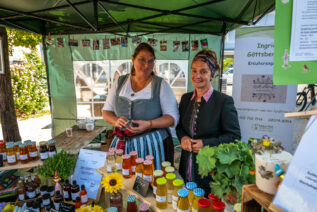 Ehepaar Astner aus Neubeuern ist seit vielen Jahren bei der Schmankerlstraße mit dabei. Normalerweise verkaufen sie Äpfel von ihren gut 200 Obstbäumen. „Die Äpfel hat es uns aber heuer leider verhagelt“, erzählte Zilli Astner. Darum bot sie zusammen mit ihrem Mann diesmal vor allem Marmeladen und Spirituosen an. „Alles selbst hergestellt“, erzählten die beiden stolz. Davon leben könnte man aber leider nicht: „Das ist unser Hobby“.