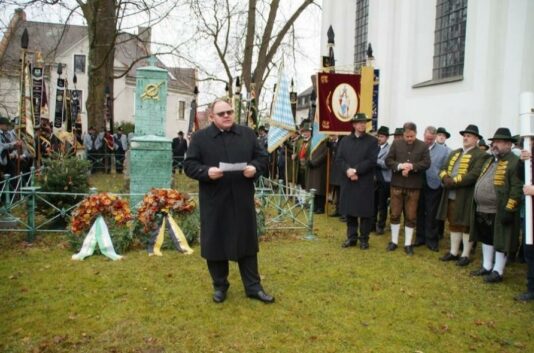 Bei kaltem, aber trockenem Wetter versammelten sich auch in diesem Jahr die Trachtenvereine des Isargaus mit insgesamt 21 Fahnenabordnungen, allen voran die Standarte des Isargaus. Anlass war der alljährliche Abschluss des Trachtenjahres 2025, der traditionell mit der Gedenkfeier des Trachtenvereins Schmied-von-Kochel an die Sendlinger Mordweihnacht von 1705 begangen wird.