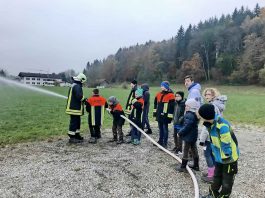 Verschiedene Stationen wie Atemschutz, Höhenrettung und Feuer-Kontakt waren im Programm für diesen Tag der Begegnungen und Erfahrungen. Das Löschen mit einer Kübelspritze, mit Feuerlöscher oder mit einer Spritzwand waren ebenso lehrreich wie die Betrachtungen der Vorführungen bei einem Palettenbrand oder bei einem Fettbrand. Das Gesehene oder selbst Gemachte klang bei einer gemütlichen Brotzeit und einem weiteren Gedankenaustausch aus. Das Resümee war laut Feuerwehr-Vorstand Martin Loferer durchaus positiv als er sagte: „Die Feuerwehr Atzing freut sich über weitere Mitglieder für die Jugendfeuerwehr“.