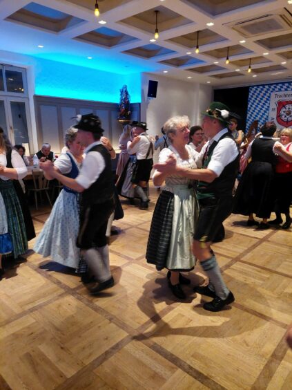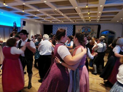 Mit schmissigen und flotten Melodien zog sie die zahlreichen Besucher, ob Tänzer oder Zuhörer, in ihren Bann. Gekonnt führten die Tanzmeister Uli Berchtold und Hans Löw durch den Abend. Höhepunkte waren die Münchner Francaise und einige Gemeinschaftsplattler.