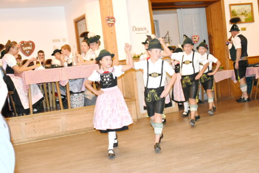 Schon der erste gemeinsame Tanz der Kinder- Jugend- und Aktiven-Gruppen zeigte ein perfektes Zusammenspiel aller Akteure. Zur Musik von „Mein Heimatland“ ging es schwungvoll zur Sache, und die Zuschauer waren gleich begeistert. Auch die folgenden Soloauftritte der Kindergruppe beim Bauernmadl und Sternpolka sowie die Plattler der Kindergruppe zeigten, dass sich der Trachtenverein keine Sorgen um Nachwuchs machen muss, die jungen Tänzer und Plattler waren mit Begeisterung bei der Sache.