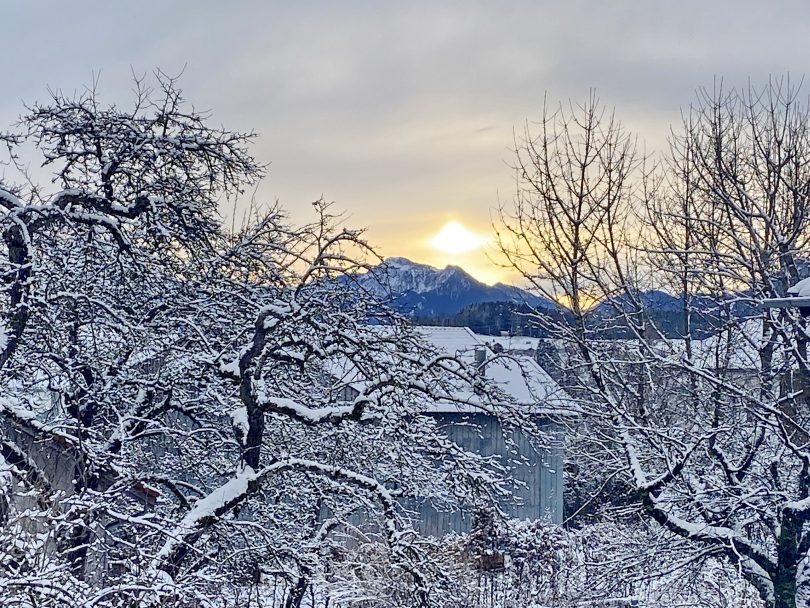 Schneefrische und Sonnenaufgang prägten den Morgen zum Wochenbeginn im Chiemgau – so wünschen wir der Leserschaft der Samerberger Nachrichten mit dieser aktuellen Aufnahme mit Blick von Prien in Richtung Hochgern ein ruhiges und erholsames Wochenende.