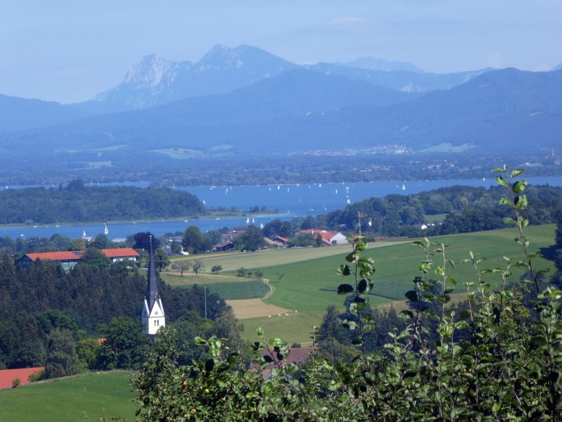 Mit diesem Chiemsee-Blick von der Ratzingerhöhe oberhalb des Rimstinger Gemeindeteils Greimharting wünschen die Samerberger Nachrichten allen Leserinnen und Lesern ein schönes Wochenende. Die Wetterprognosen lassen es erwarten, dass Sonne und weiß-blauer Himmel die Ausblicke positiv prägen.