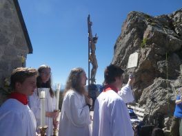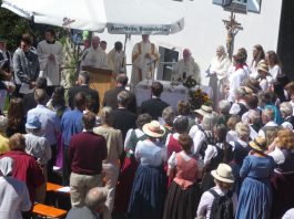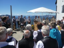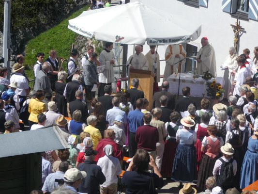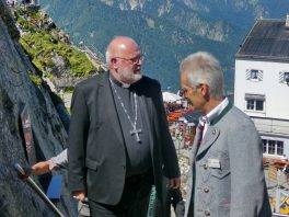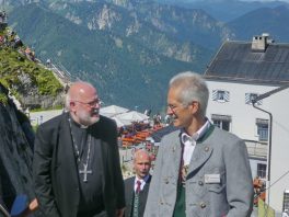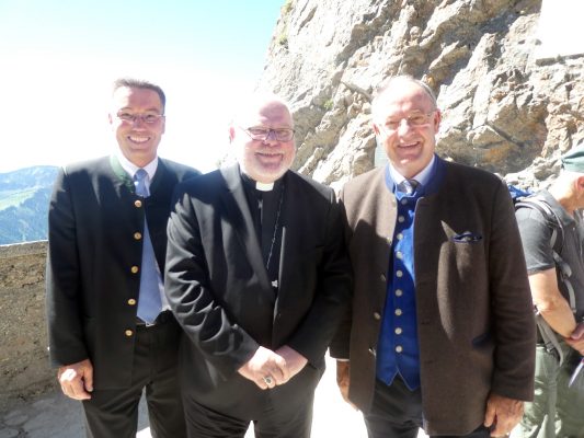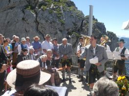 Ob man hier heroben dem Himmel ein Stück näher ist – mit dieser Frage wurde Kardinal Reinhard Marx bei seiner Ankunft an der Kirche auf dem Wendelstein von einer Gläubigen gefragt. „Geographisch und mathematisch kann ich diese Frage nicht beantworten, aber spüren kann man es schon, weil wir hier heroben sehen, wie groß und fast unendlich die Schöpfung ist“ – mit diesem Satz und mit dem Eingeständnis, dass er froh und glücklich ist, in Bayern sein zu dürfen gab der hohe kirchliche Würdenträger damit eine passende Antwort. Kardinal Marx war auf den Wendelstein gekommen, weil viele Kräfte eine umfassende Renovierung von Deutschlands höchst gelegener Kirche ermöglicht hatten. Sein Dank und der Dank des Pfarrverbandes Brannenburg-Flintsbach galt allen Spendern, Planern, Bauleuten sowie den kirchlichen Gremien, dem Chor, den Blasmusikanten und dem Altardienst von Brannenburg. In seiner Predigt würdigte Kardinal Marx die Anstrengungen der Kirchenerbauer, denen wichtig war, dass die Wanderer und Erholungssuchenden auf dem Gipfel nicht nur ein Gasthaus, sondern auch ein Gotteshaus vorfinden. „Auf den Bergen spüren wir die Natur und wir kommen dem Geheimnis Gottes näher, deshalb finden auch die Wallfahrten und Berg-Gottesdienste immer mehr Zuspruch“, so der Kardinal, der die Schöpfung als Ausdruck der Liebe Gottes bezeichnete. Die Bewahrung der Schöpfung bezeichnete er als elementare Pflicht für alle Menschen und Nationen. „Hier ist Jeder aufgerufen, hier müssen wir gemeinsam Verantwortung übernehmen ganz nach dem Vorbild des Heiligen Franziskus“, mit diesen Worten brachte Kardinal Marx zum Ausdruck, dass das Geschenk der Schöpfung nur durch Solidarität bewahrt werden kann. Abschließend wünschte er allen Gläubigen auf den Bergen stets erholsame Wanderungen und er versicherte, dass auf allen Wegen Gott mit unterwegs ist.
