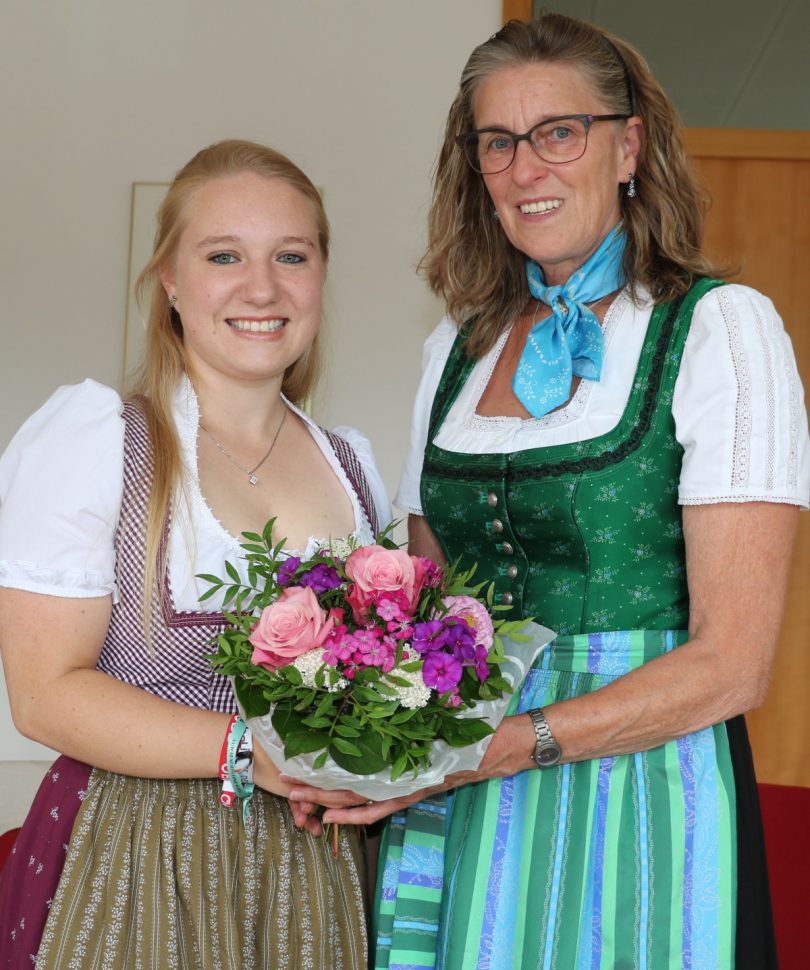 Ihr Zeugnis – ein Traum! Fast nur Einser stehen im Abschlusszeugnis von Elisabeth Schäffer aus Frasdorf-Umrathshausen. Mit der Traumnote beendete sie ihre Ausbildung als Steuerfachangestellte. Bürgermeisterin Marianne Steindlmüller überreichte ihr die Glückwünsche und eine Anerkennung der Gemeinde Frasdorf für ihr hervorragendes Zeugnis. Für diese außergewöhnliche Leistung erhielt sie in Rosenheim den Staatspreis der Regierung von Oberbayern überreicht. Elisabeth Schäffer lernte bei der Kanzlei Schleicher Friedrich Krämmer und Partner in Prien und will nach ihrem exzellenten Abschluss bei der Kanzlei Bartsch in Aschau weiter praktisch arbeiten, ihren Beruf in allen Feinheiten kennen lernen und dann weitere Ausbildungen im Bereich Steuerrecht hinter sich bringen. Elisabeth Schäffer engagiert sich bei der Feuerwehr in Umrathshausen als aktive Feuerwehrfrau und ist in diesem Jahr Schützenkönigin bei den „Chiemgauadlern“ von Umrathshausen.