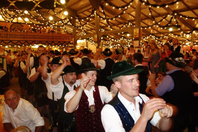 Seit etlichen Jahren erfreut sich der Blasmusikabend im Flötzinger-Zelt am mittleren Wiesnsonntag großer Beliebtheit. Stimmungsvoller Höhepunkt dabei ist zweifellos, wenn sich die Burschen an jedem freien Fleckerl im größten freistehenden Bierzelt Europas zu einem gemeinsamen Plattler einfinden. Das Schuhplatteln als Ausdruck echter bayerischer Lebensart auf einfache Weise zu erlernen, ist jetzt ein Angebot des Trachtenvereins “D’ Innviertler”