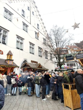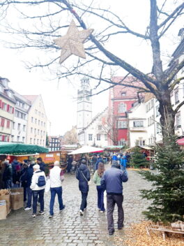 Noch bis 23. Dezember lädt die Radt Ravensburg zum Christkindlermarkt auf den Marienplatz vor dem Lederhaus ein.