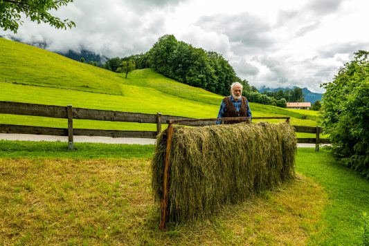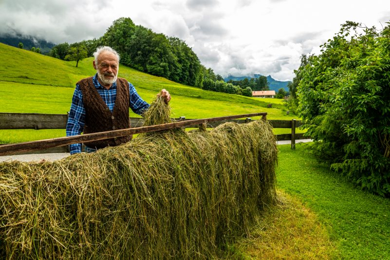 Ein Bild wie in früheren Zeiten zeigt sich derzeit in Lochen bei Grainbach auf dem Samerberg. Der dortige, 82jährige Leopold Wörndl hat aufgrund der aktuellen Witterung auf die vormals häufig verwendeten „Schwedenreiter“ zurückgegriffen. „Schwedenreiter“ sind temporäre Einrichtungen, die vorübergehend auf den Feldern für die Heugewinnung errichtet wurden, um das aufgehängte Heu auf diese Weise trotz feuchter Witterung zu trocknen. Daraus wird dann gutes Heu, das einige Wochen später abgeerntet wird. „Außer es kam vorher der Gewittersturm oder ein starker Föhn, der hat dann ganze Schweden, sofern sie nicht ausreichend eingespreizt waren, teilweise umgerissen und vernichtet. Die ganze Arbeit war sozusagen am Boden zerstört, die Bauersleute waren es aber auch“ – so Bauer Wörndl in seinen Erinnerungen.