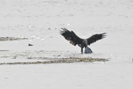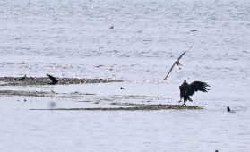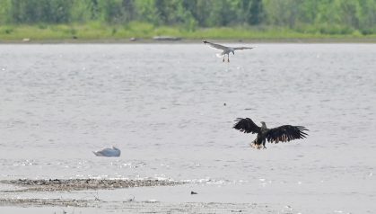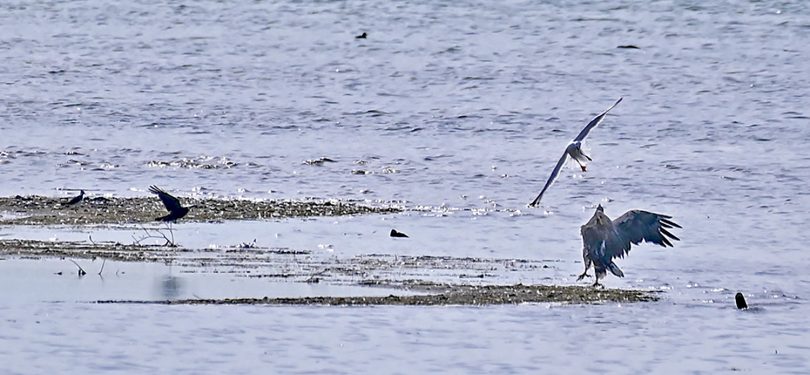 Am letzten Sonntag, den 27. Juni 2021, machten ich und meine Eltern einen schönen Ausflug in den Chiemgauer Alpen. Auf der Rückreise nach München wollte ich unbedingt an der Hirschauer Bucht vorbei schauen. Ich musste nicht lang warten, da tauchte schon eine Bachstelze auf, die eine schöne Beute für ihre Jungen erbeutet hatte. Ich war so beschäftigt mit der Szene, dass ich beinahe den Seeadler verpasst hätte. Ich drehte mich plötzlich um und sah den Seeadler, wie er mit den Mittelmeermöwen kämpfte. Sie stritten sich um einen Kadaver. Danach flog ein Schwarzmilan vor dem Turm vorbei und die Bachstelze erbeutete eine große Libelle. Manchmal muss man Glück haben.